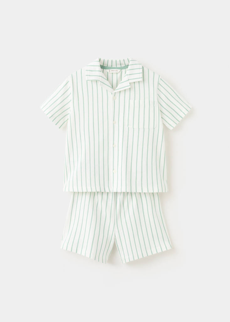 Teixit 100% cotó. Disseny recte. Disseny curt. Coll camiser. Màniga curta. Tancament davanter amb botons. Detall butxaca pit. Cintura elàstica
