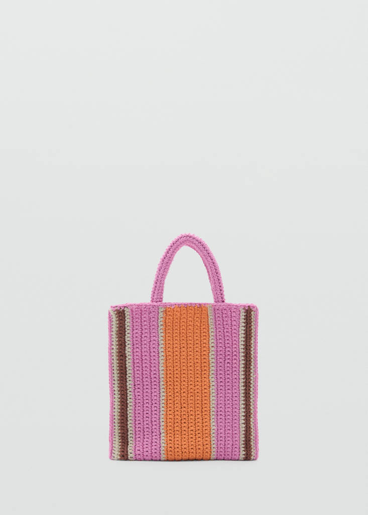 Mida mini. Doble nansa curta. Nansa llarga. Nansa en contrast. Sense tancament. Teixit de ganxet. Disseny de ratlles
