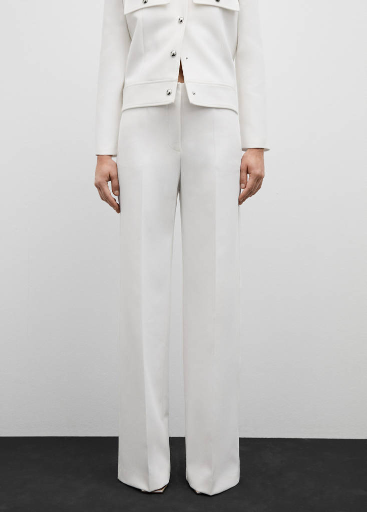 Teixit fluid. Disseny llarg. Disseny recte. Dues butxaques laterals. Tanca oculto de botó, ganxo i cremallera. Total look. Folre interior.