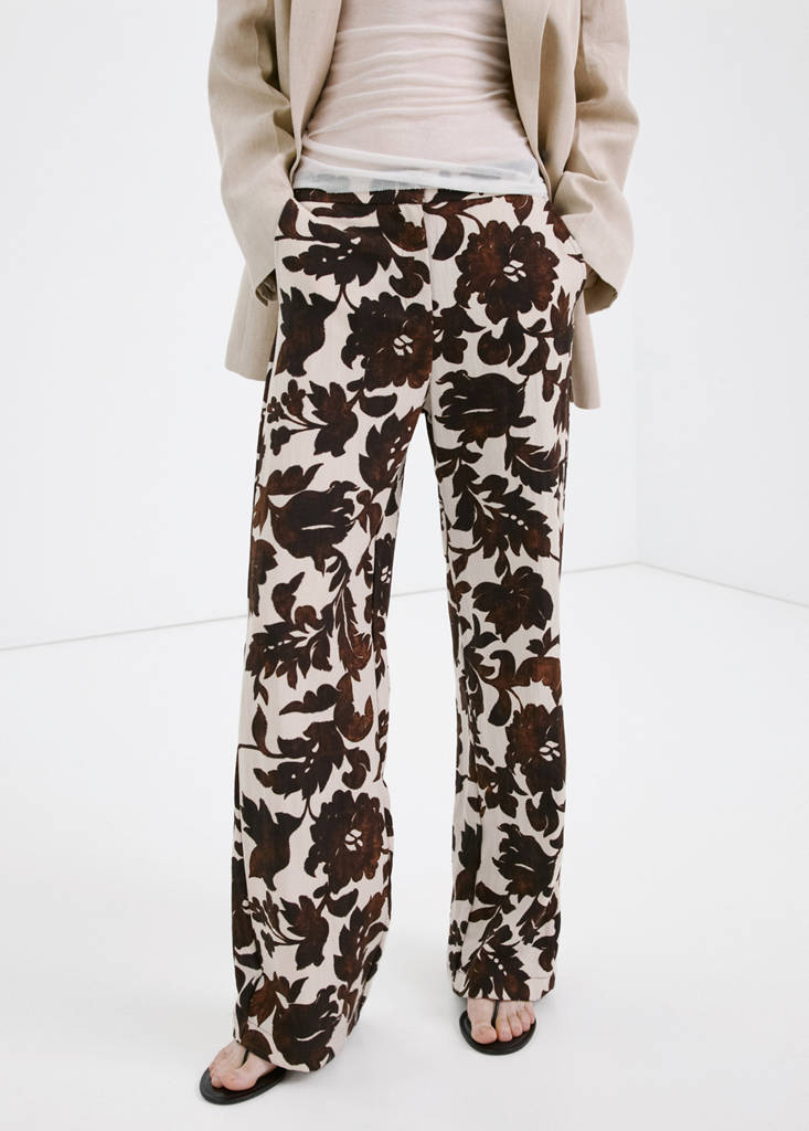 Teixit fluid. Disseny recte. Disseny llarg. Disseny estampat floral. Tancament de botó i cremallera ocult. Dues butxaques laterals