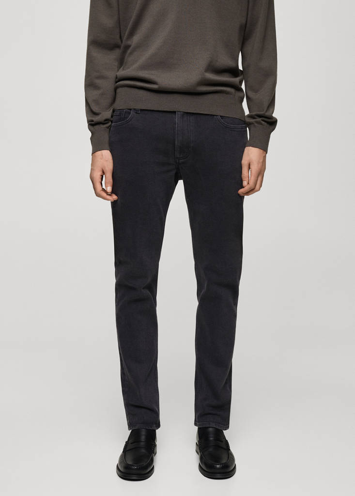 Teixit de cotó estil texà vaquer. Slim fit. Tancament de botó i cremallera. Travetes per a cinturó. Cinc butxaques. Butxaca moneder. Dos butxaques de trau davanteres. Dos butxaques de pedaç a la part posterior
