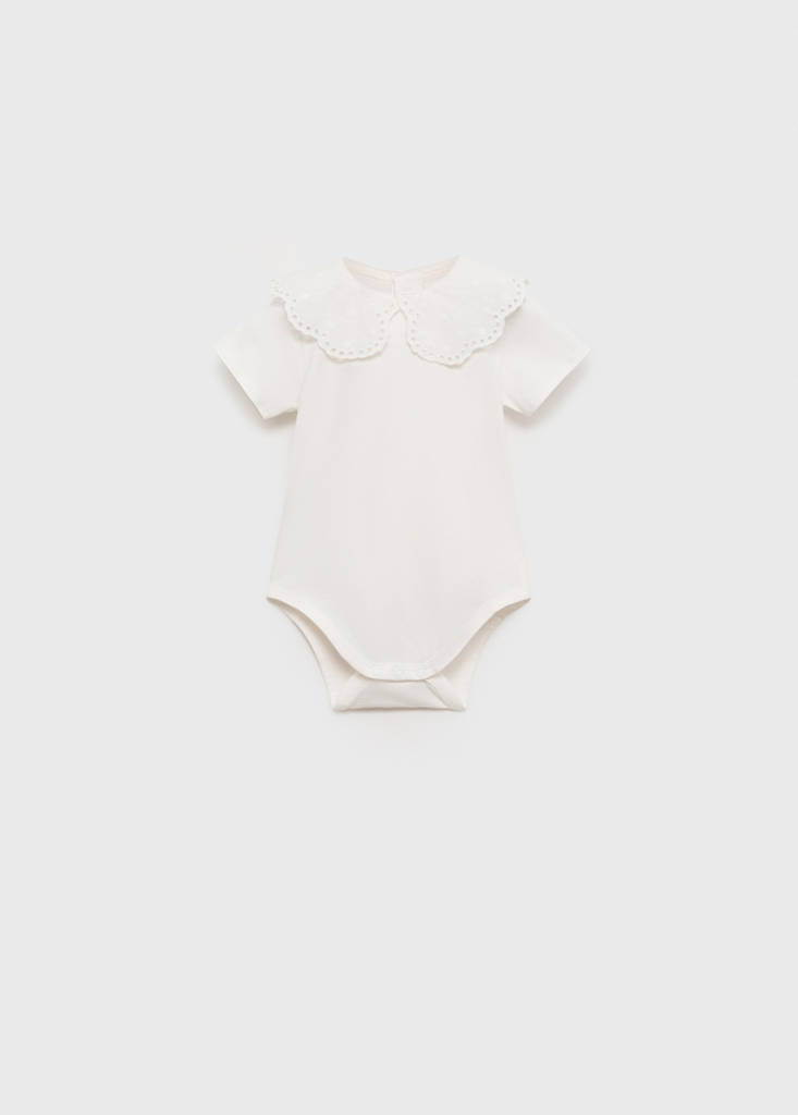 Teixit de cotó. Disseny recte. Disseny curt. Coll babydoll. Coll brodat. Màniga curta. Tanca metàl·lica a pressió a la vora