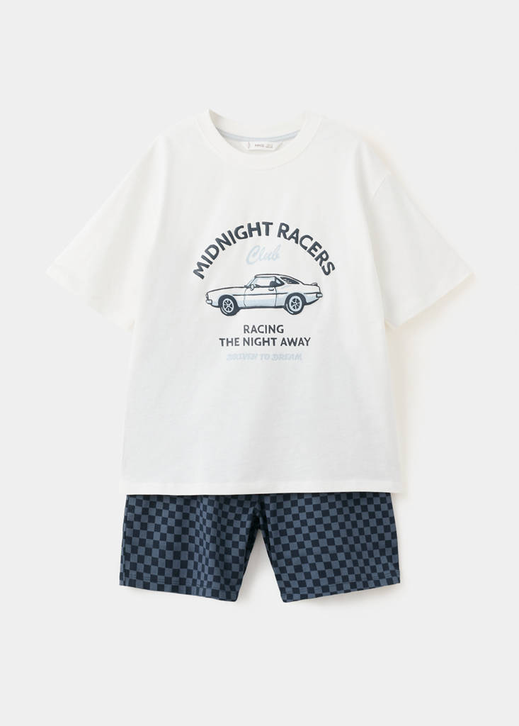 Teixit 100% cotó. Conjunt pijama màniga curta. Disseny recte. Disseny curt. Coll rodó. Màniga curta. Dibuix estampat al pit. Cintura elàstica. Colors combinats