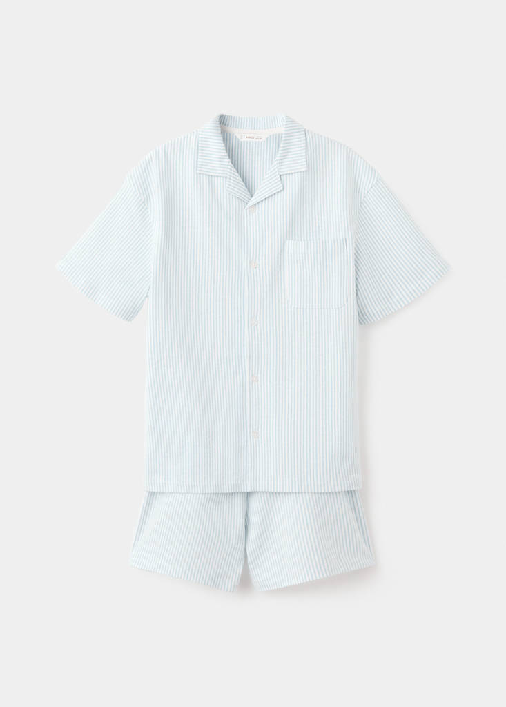 Teixit 100% cotó. Disseny recte. Disseny curt. Coll camiser. Màniga curta. Tancament davanter amb botons. Detall butxaca pit. Cintura elàstica