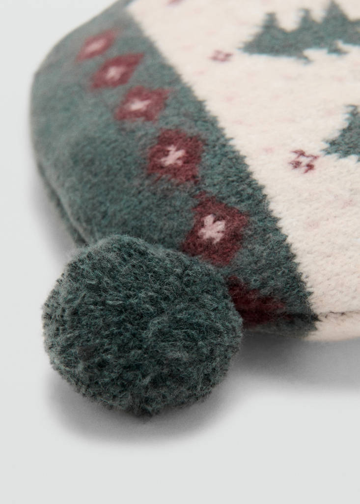 Teixit de punt. Disseny pi. Detall de borla. Tancament de cordill. Col·lecció Nadal. Conjunt disponible com a total look