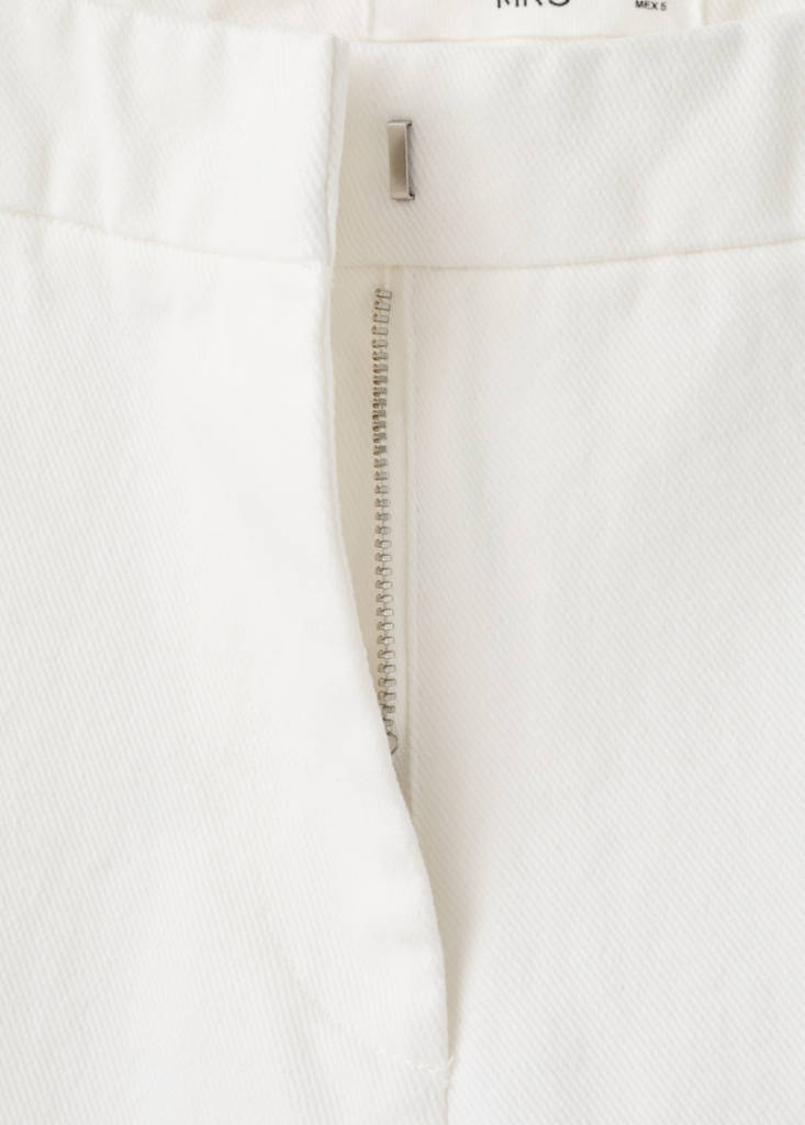 Teixit de cotó estil texà vaquer. Disseny recte. Disseny llarg. Travetes per a cinturó. Tancament de ganxo. Dues butxaques laterals. Detalls laterals botó de nus xinès