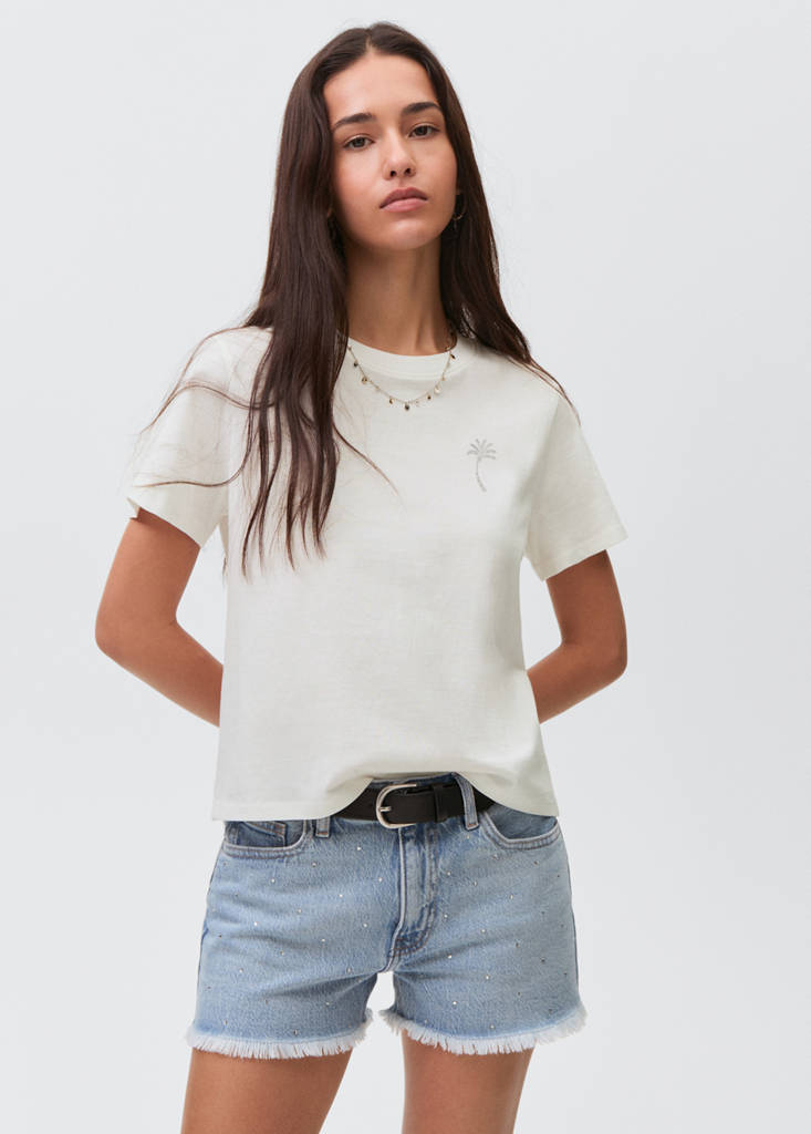 100% cotó. Disseny recte. Disseny palmeres. Dibuix estampat al pit. Dibuix estampat a la part posterior