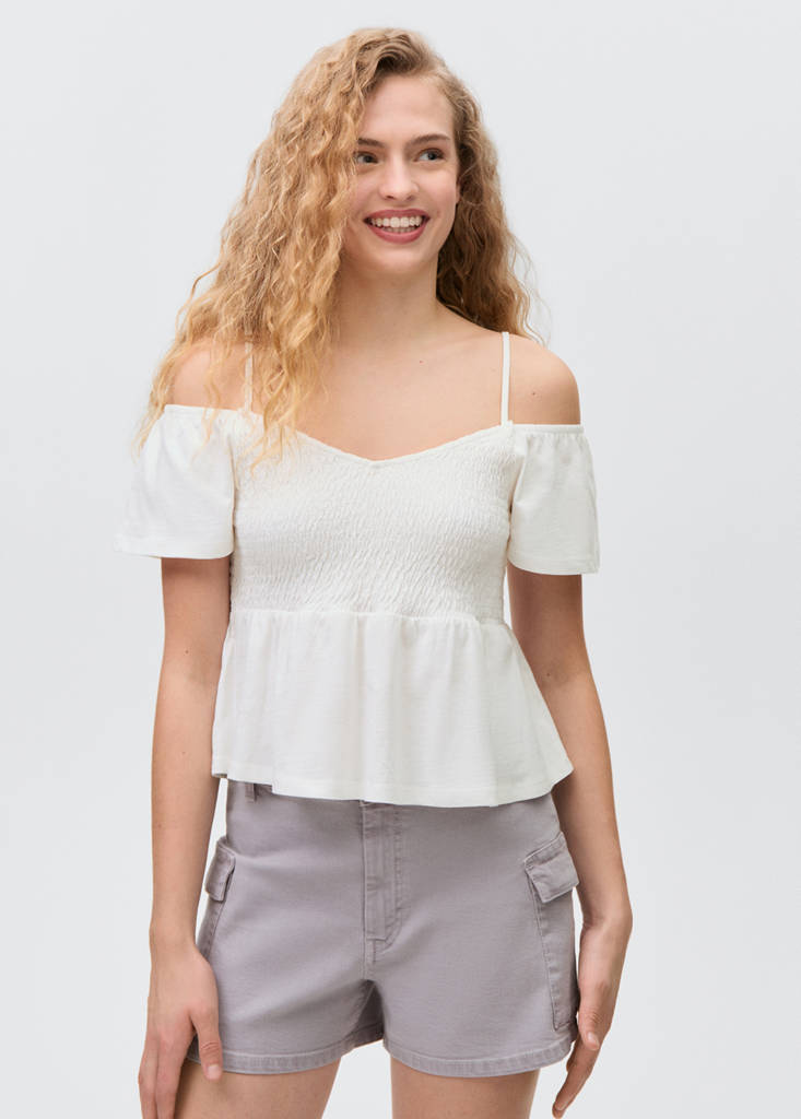 Top frunzit volantPreu actual [€ 12,99 ]€ 12,99Selecciona un colorBlanc trencatSelecciona la teva tallaXXSNo disponible. Ho vull!XSNo disponible. Ho vull!SNo disponible. Ho vull!MNo disponible. Ho vull!LNo disponible. Ho vull!Avisa'mAfegir a PreferitsVeure lookEnviament gratis a la botiga100% cotó. Disseny recte. Disseny curt. Panell arrugat. Detall de volant a la cintura. Coll en punta. Cut-out. Màniga curta amb volantDetalls, composició i curesDisponibilitat a botigaQualitats de l'articleCotó reciclatAlmenys 20 %Aquesta fibra s'obté a partir de restes tèxtils pre- i postconsum que es transformen en nous teixits.