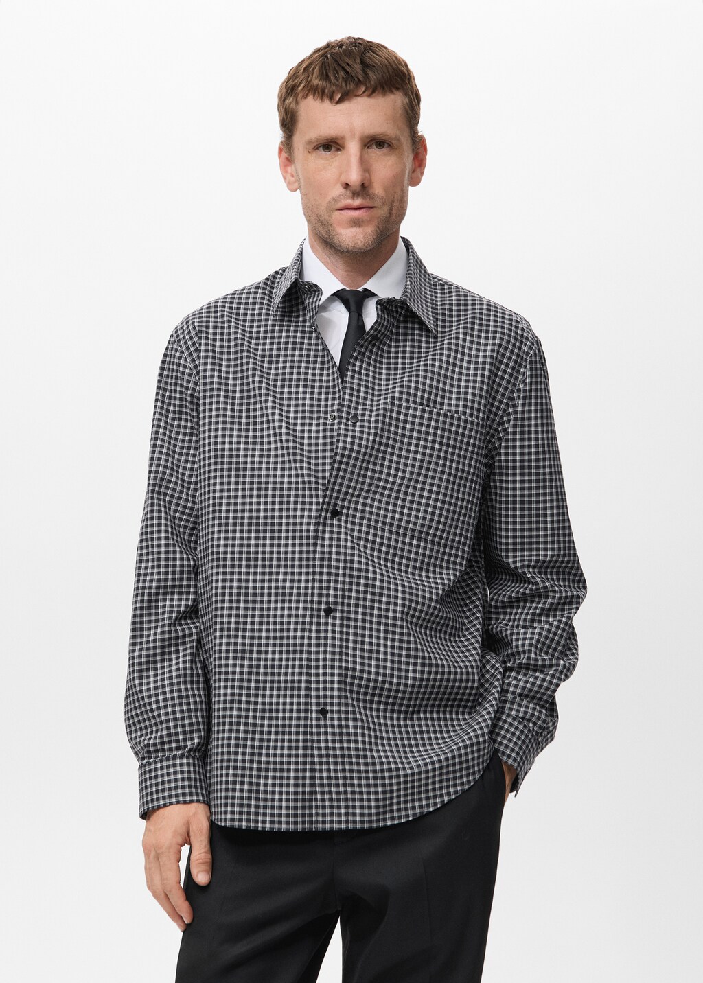 Relaxed fit. Tejido 100% algodón. Diseño de cuadros. Cuello camisero. Bolsillo de parche en el pecho. Manga larga con puños abotonados. Cierre delantero con botones a presión.