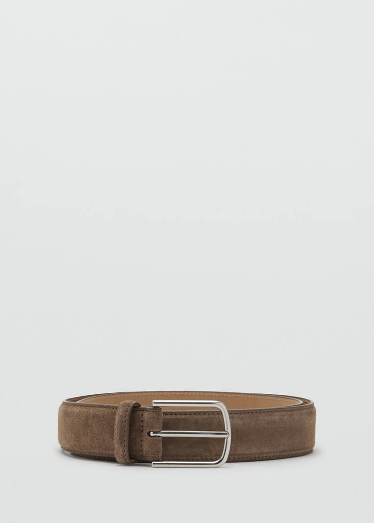 100% piel de serraje. Cierre de hebilla cuadrada metálica. Perforación para ajuste de talla gratuito en tiendas MANGO.