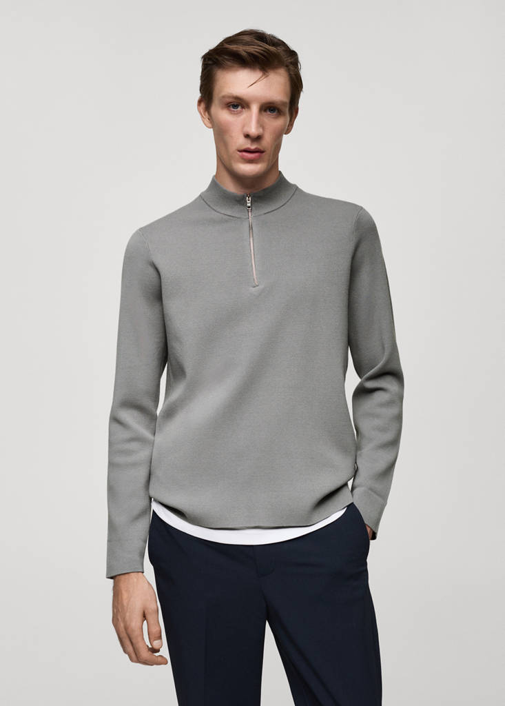 Los colores beige y gris son exclusivo online. Cuello perkins con cierre de cremallera. Manga larga. Bajo recto. Tejido de punto medio. Terminaciones de canalé en el cuello