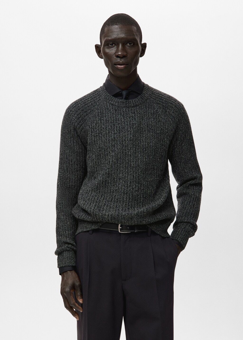 Tejido mezcla de lana. Diseño recto. Cuello redondo. Diseño de canalé. Manga larga con puños elásticos. Bajo redondeado.