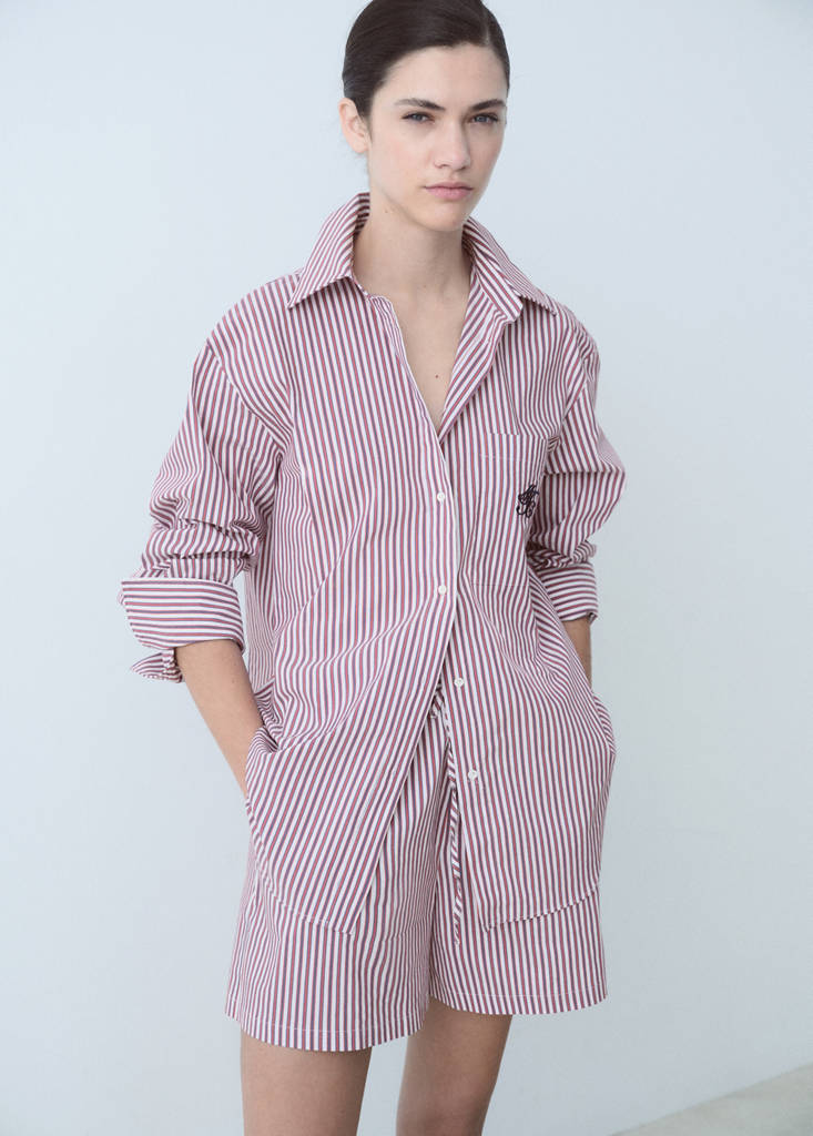 Tejido popelín de algodón. Regular fit. Diseño recto. Estampado de rayas. Cuello camisero. Manga larga con puños abotonados. Bolsillo de parche en el pecho. Mensaje bordado en el pecho. Cierre delantero con botones. Total look. Colección Godó