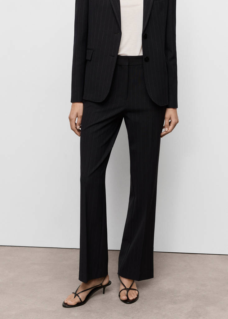 Estilo traje. Diseño largo. Diseño recto. Los colores azul y burdeos tienen estampado raya diplomática. Tiro medio. Trabillas. Dos bolsillos laterales. Cierre oculto de botón, gancho y cremallera. Forro interior. Disponible Plus. Total look.