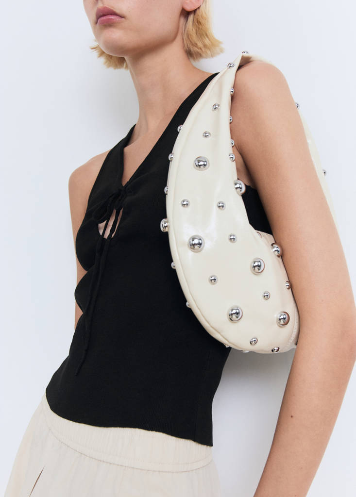 Este diseño entallado, hecho en tejido de punto fino, destaca por su elegante cuello de pico y un delicado lazo en el escote. Con tirantes anchos y sin mangas, se caracteriza por su estilo limpio y sin cierres, ofreciendo una apariencia sofisticada y moderna