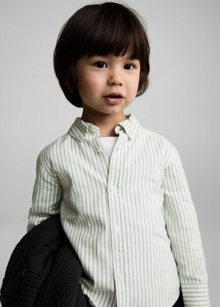 نسيج 100% قطن. قماش أكسفورد. تصميم مخطط. أكمام طويلة. ياقة قميص. أساور بأزرار. حاشية مستديرة. إغلاق بأزرار