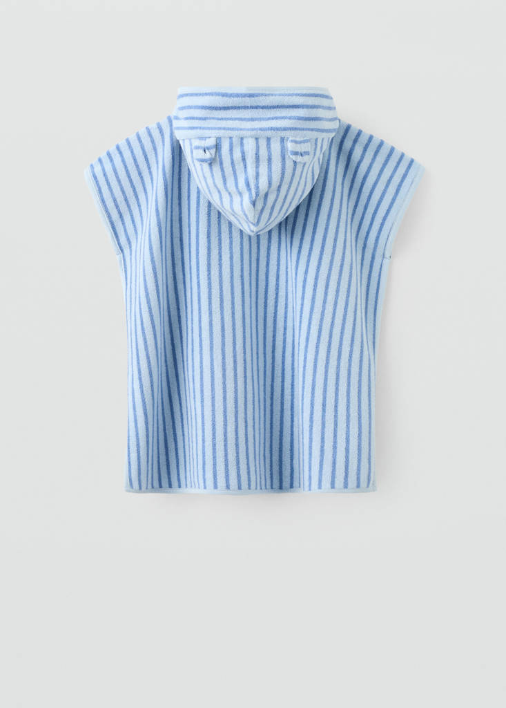 بونشو على شكل منشفة مع غطاء رأس. نسيج قطني. تصميم مخطط. حقيبة صغيرة. مجموعة الحمام