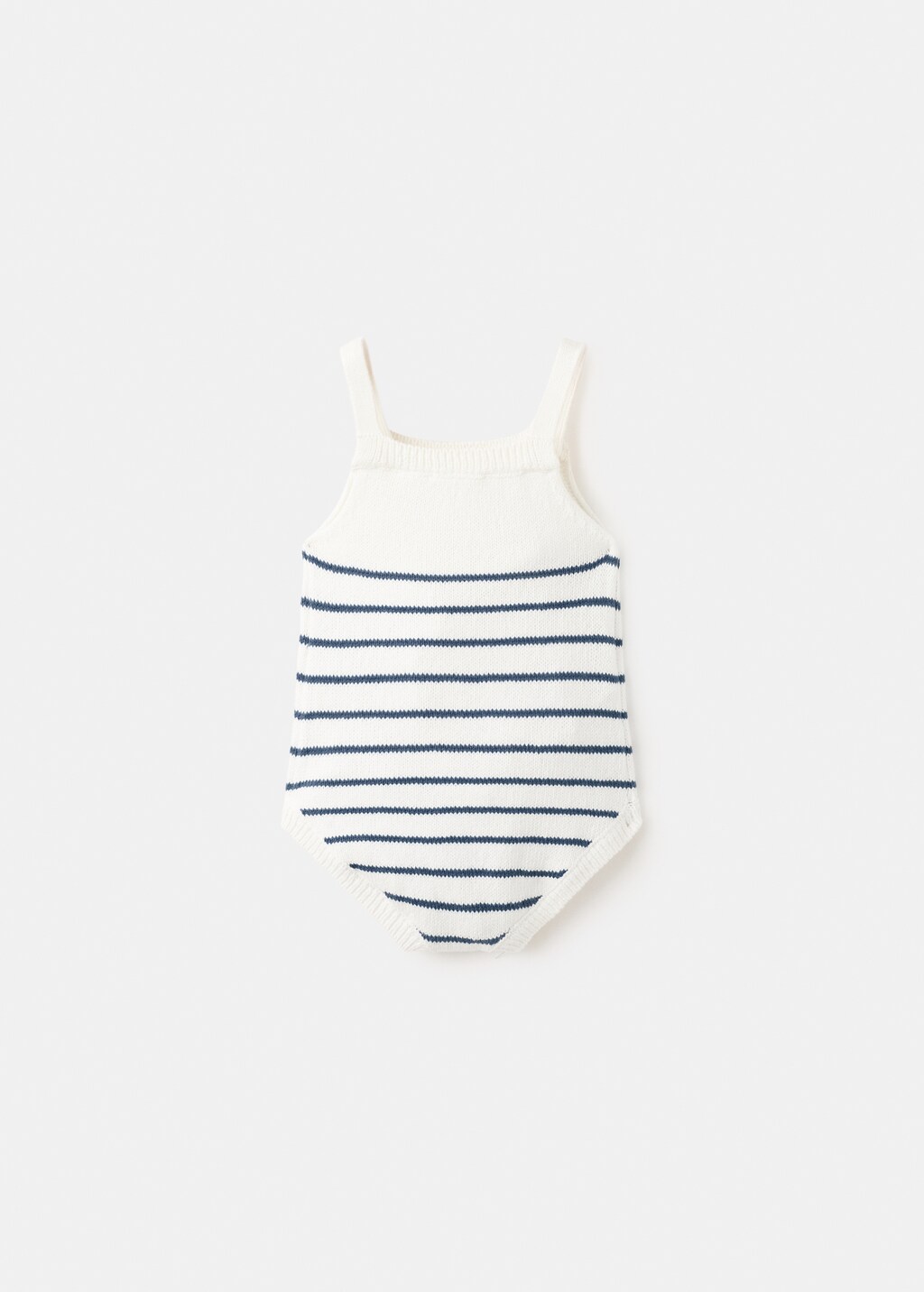 نسيج 100% قطن. نسيج محبوك. تصميم مستقيم. تصميم مخطط. ياقة مستقيمة. حمالات مع قفل أزرار. إغلاق بأزرار في الخلف. إطلالة كاملة.