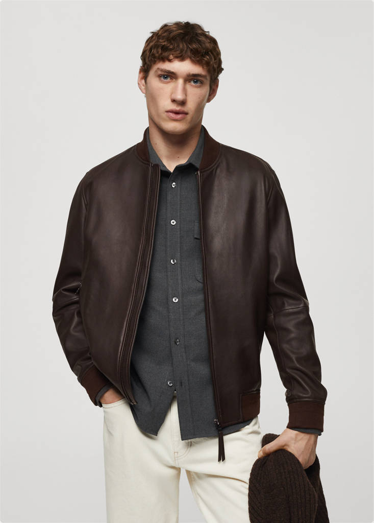 100% جلد نابا. متوسط الحجم. قصة سليم فيت. طوق بومبر مضلع. أكمام طويلة مع أساور مرنة. إغلاق بسحاب أمامي. جيبان جانبيان بسحاب متباين. الحافة بشريط مطاطي. بطانة داخلية. جيب داخلي