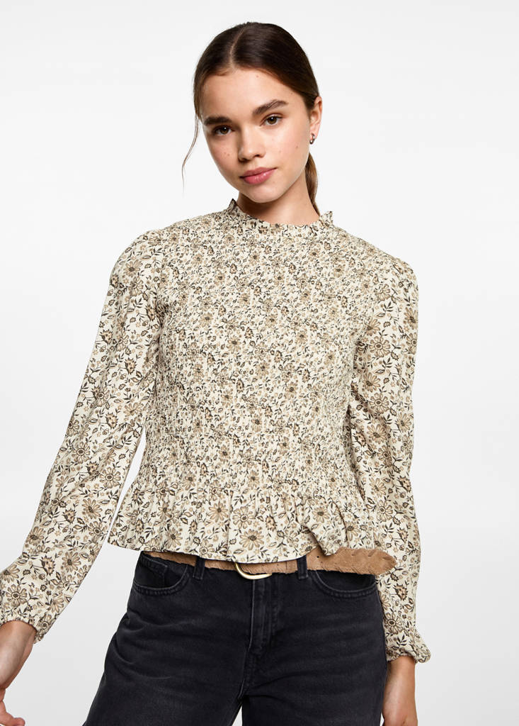 بلوزة بزهور متجمعة