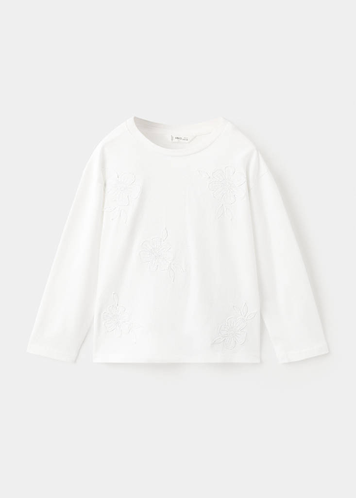 100% cotton fabric. Straight design. Round neck. Long sleeves. Flowered embroidery