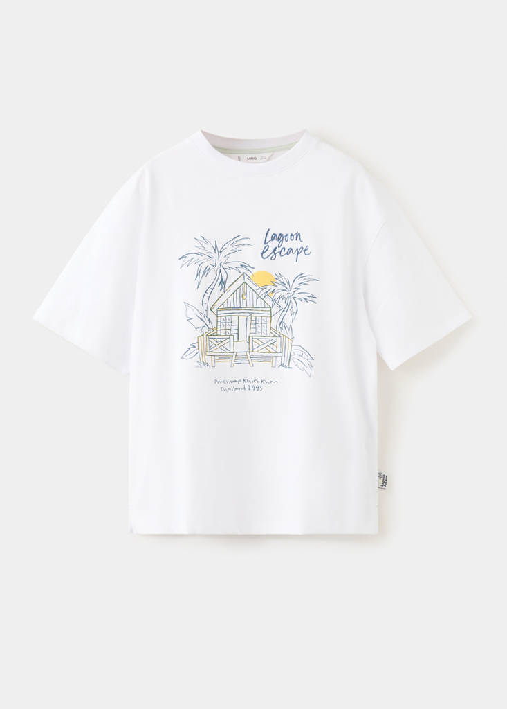 100% cotton fabric. Straight design. Round neck. Short sleeves. Printed drawing on the chest