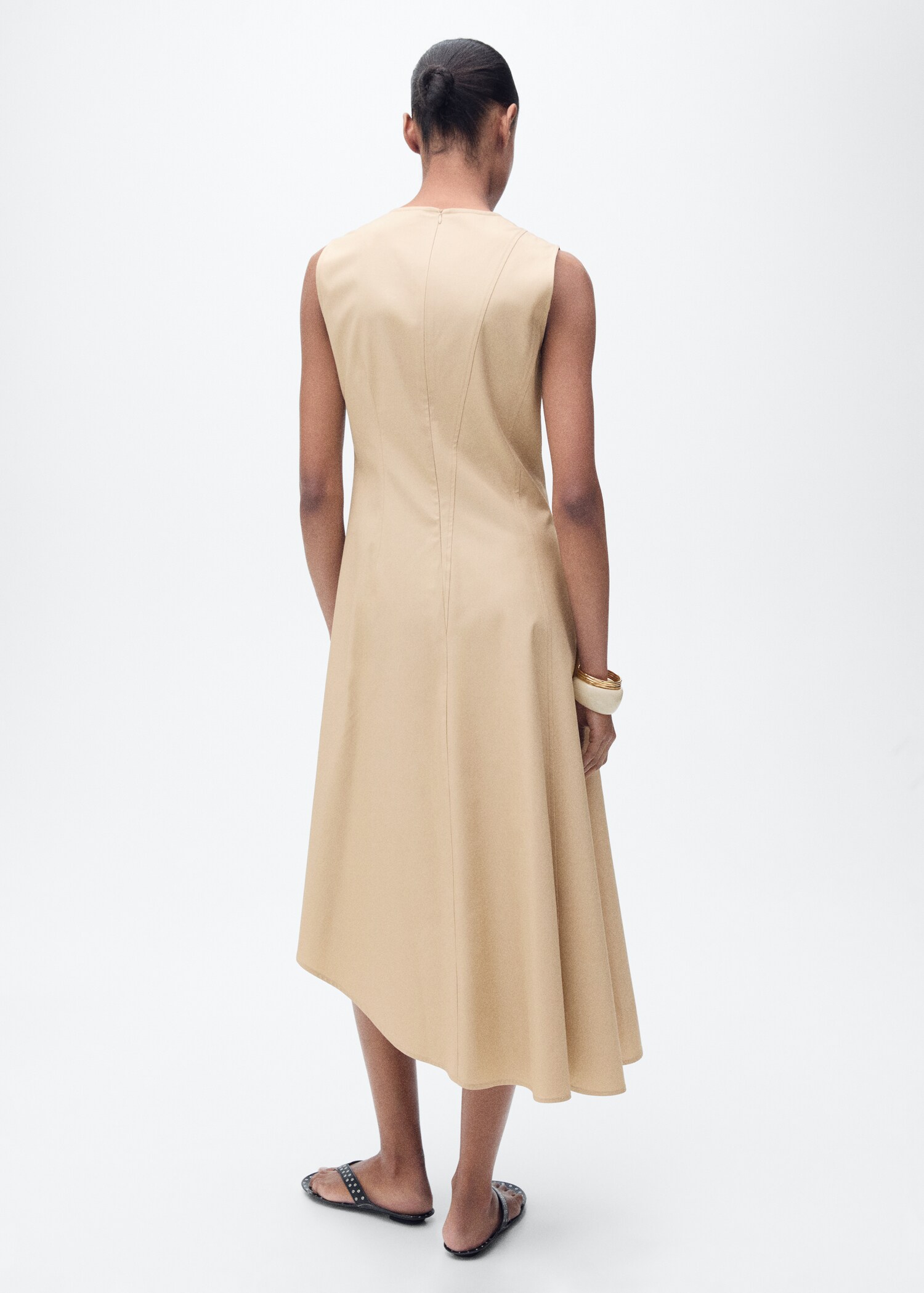 Cotton and lyocell-blend fabric. A-line design. Midi design. Round neck. Sleeveless. Wide straps. Asymmetric hem. Zip fastening on the back section. Inner lining.