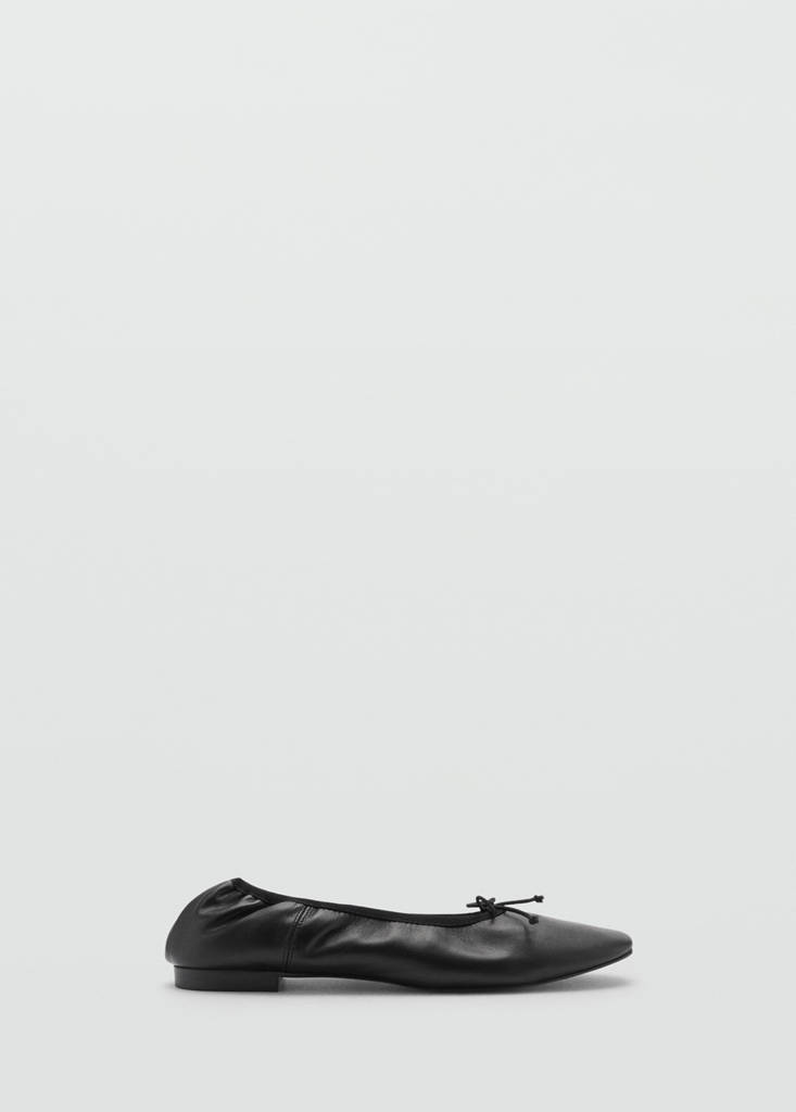 Leather ballet flats with bowCurrent price [AED 299.00 ]AED 299.00Select a colourBlackSelect your size35Not available. I want it!36Not available. I want it!37Not available. I want it!38Not available. I want it!39Not available. I want it!40Not available. I want it!41Not available. I want it!42Not available. I want it!DimensionsNotify meAdd to WishlistSee lookConvenient home deliveryRound toe. Flat. No Fastening. Decorative bow. Bovine hideDetails, composition and careStore availability