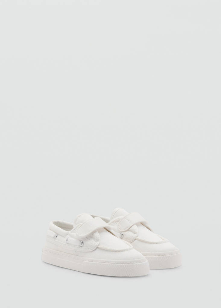 Velcro nautical sports shoesCurrent price [Lek 3,990.00 ]Lek 3,990.00Select a colourOff WhiteSelect your size212223Last few items!2425262728DimensionsAddAdd to your wishlistSee lookFree delivery to store100% Cotton. Rounded instep. Contrast rubber sole. Backstitched details. Velcro fasteningDetails, composition and careStore availability