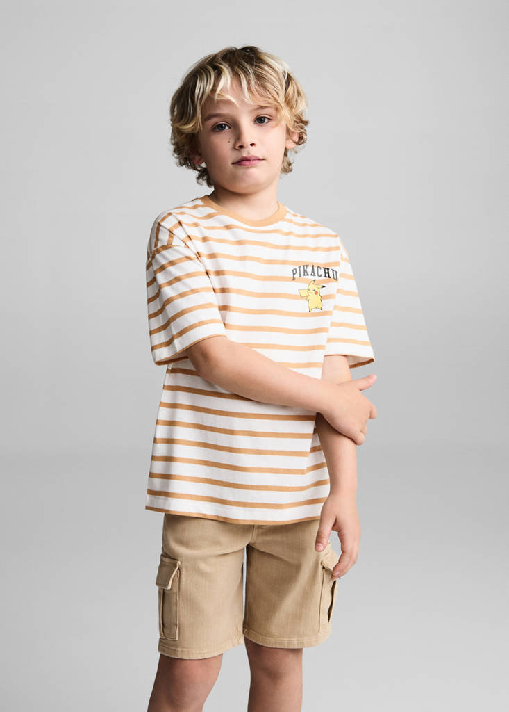 Licenses. Striped print. Straight design. Round neck. Short sleeves. Pikachu Pokemon