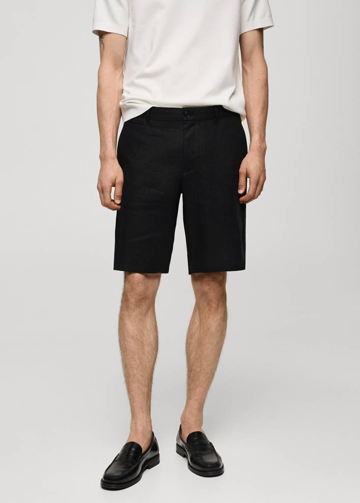 Slim-fit 100% linen bermuda shorts
