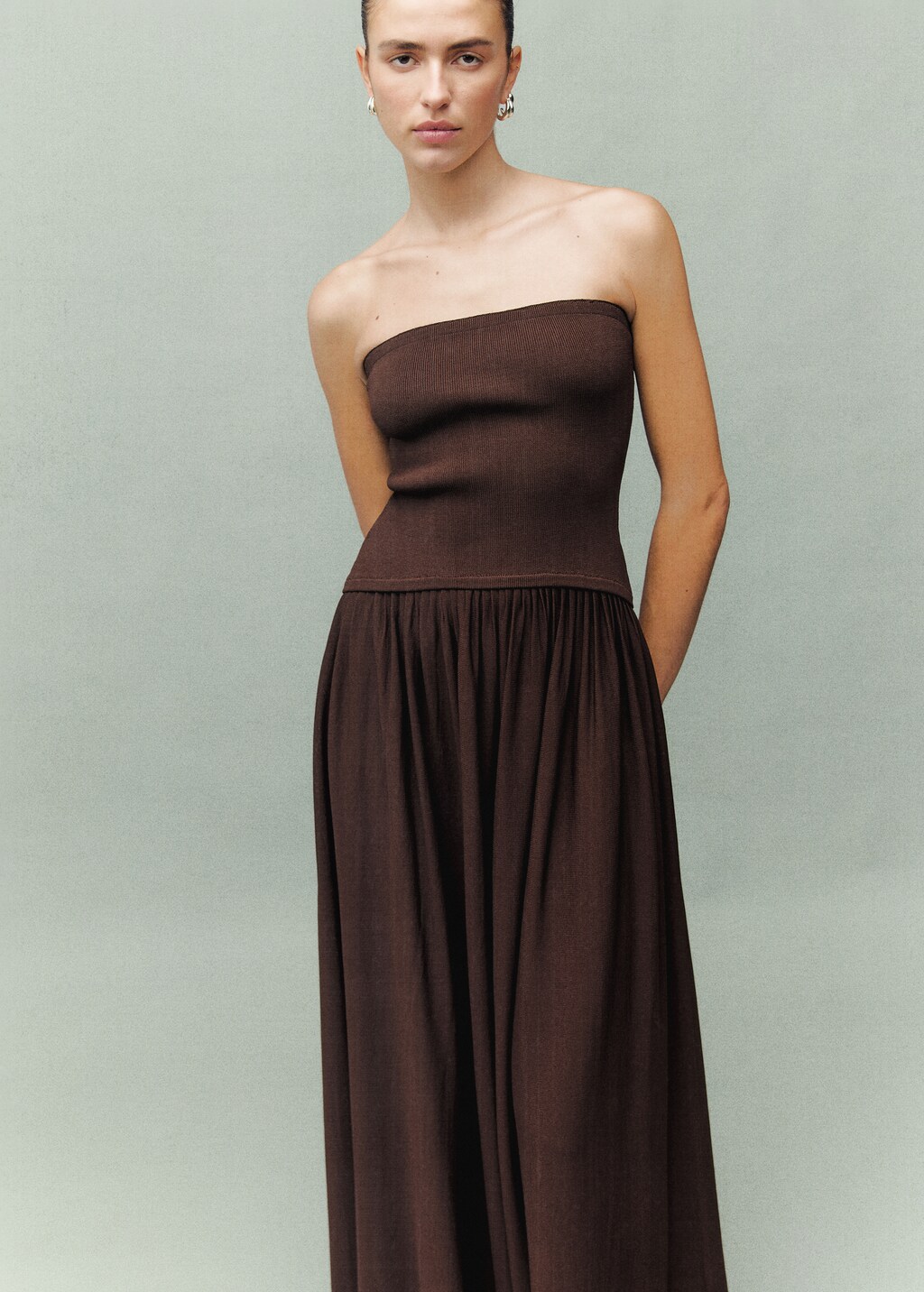 Knitted fabric. Combined design. Long design. Strapless. Sleeveless. No Fastening. This garment is part of our party and event collection, designed to elevate your looks for special occasions.