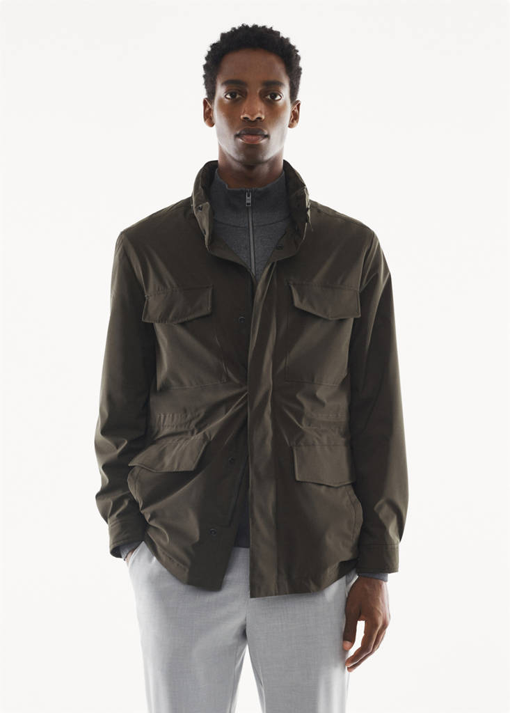 Medium design. Water-repellent: The durable finish of this garment protects against light rain, repelling contact with water and raindrops. Funnel neck. Foldable and concealable hood. Long sleeve. Four flap pockets on the front. Concealed zip and button fastening. Inner lining. Inner pocket. The model is 187 cm tall and is wearing a size M