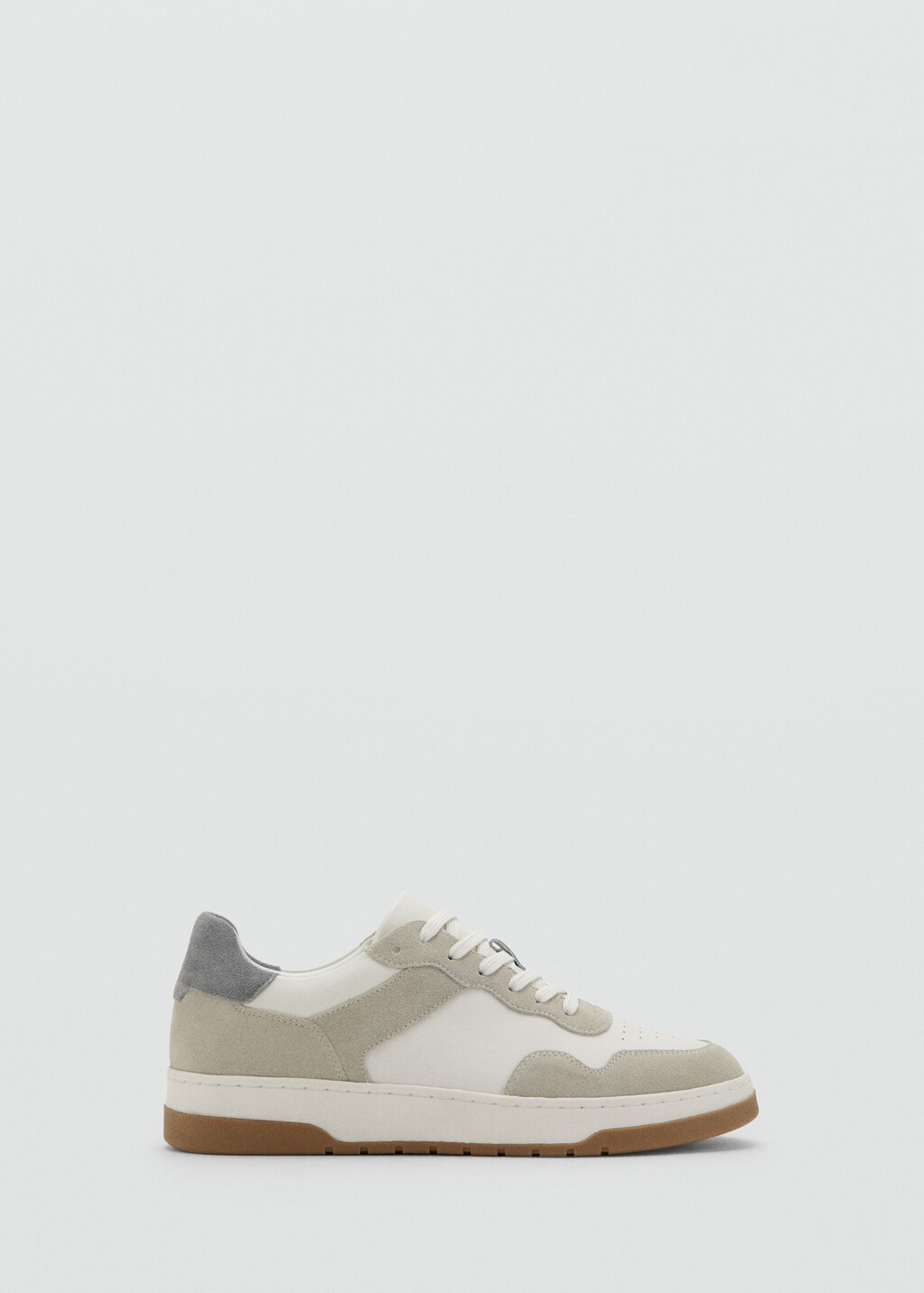 Leather cut. Combined with contrasting suede appliqués. Round toe. Backstitched details. Laces. Rubber sole.