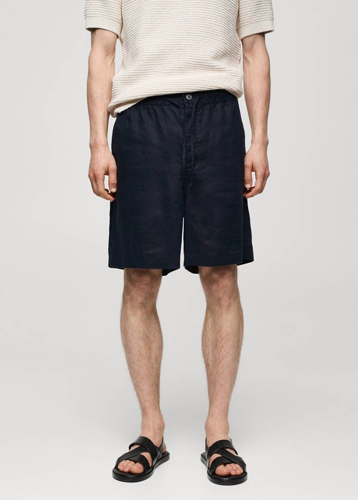 100% linen bermuda shorts with drawstring