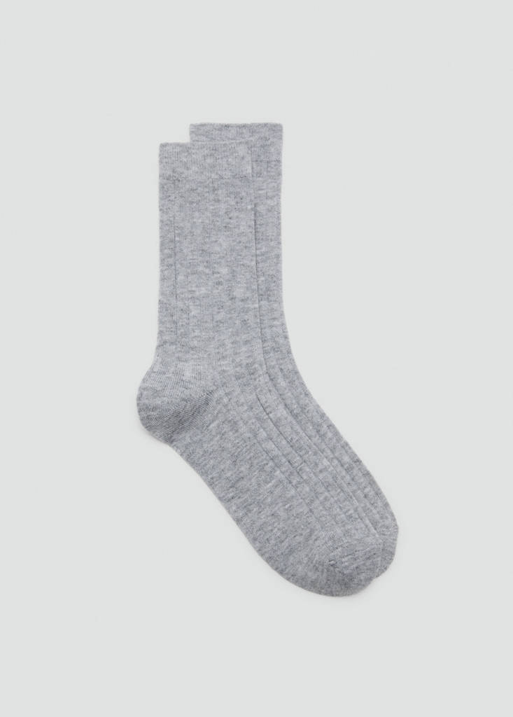 Ribbed wool blend socksCurrent price [AMD 6,900.00 ]AMD 6,900.00Select a colourMedium Heather GreySelect your sizeOne sizeAdd to WishlistSee lookFree delivery to storeSee availability in storeDescriptionWool mix fabric. Ribbed design.See detailsShare