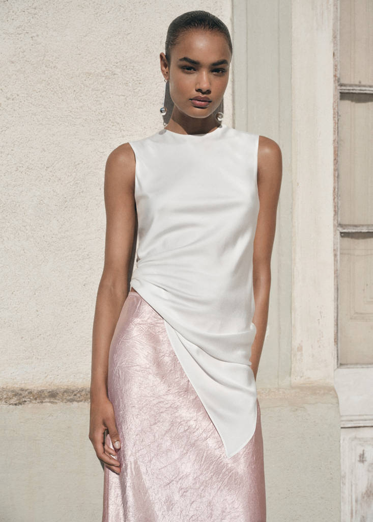 Creased-effect satin skirt