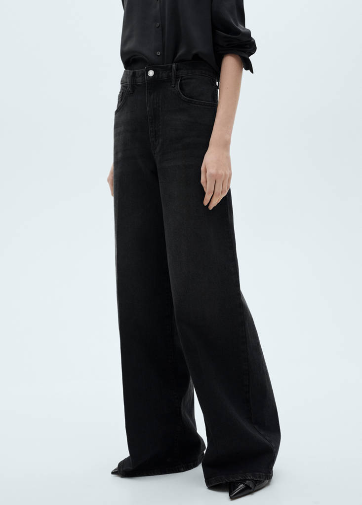 Хлопковая ткань в стиле джинсовой ткани. Длинный дизайн. Фасон wideleg. Высокая посадка. Шлёвки. Пять карманов. Застежка-молния и пуговица. Длина по внутреннему шву 83 см.