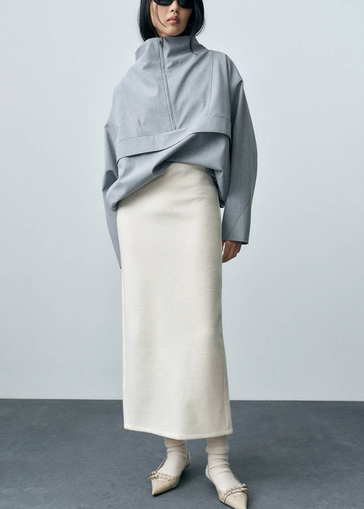 СЕРТИФИЦИРОВАННАЯ ШЕРСТЬ. В состав входит шерсть. Миди-дизайн. Прямой крой. Средняя посадка. Застежка-молния на задней части. Задний разрез внизу. Эти изделия содержат шерсть, полученную в соответствии с сертификатом RWS (Responsible Wool Standard), который гарантирует, что с животными обращались гуманно и ответственно