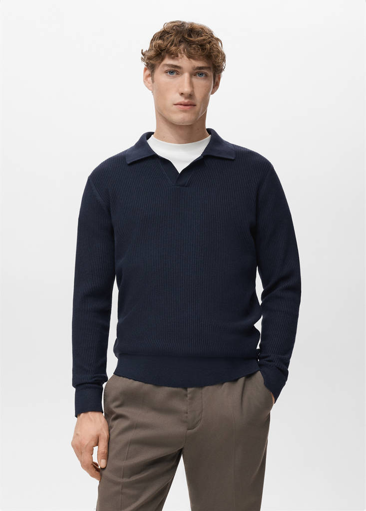 Коричневый цвет доступен только онлайн. Прямой крой. Ткань из смеси хлопка. Воротник поло без пуговиц. Длинные рукава. Отделка в рубчик. Стандартная длина. Длинный рукав. Прямой силуэт. Тонкая вязка. Расположение застежки на воротнике. Воротник / вырез: Поло.