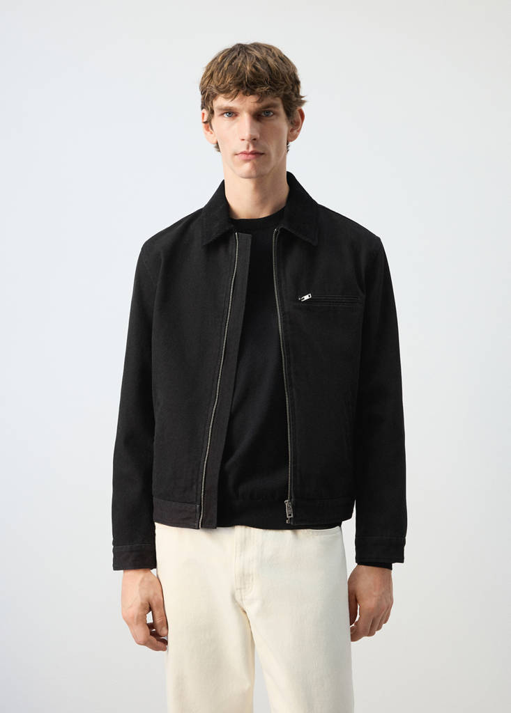 Ткань в ковбойском стиле 100% хлопок. Прямой крой. Стандартная длина. Вельветовый рубашечный воротник. На груди карман с молнией. Спереди два прорезных кармана.