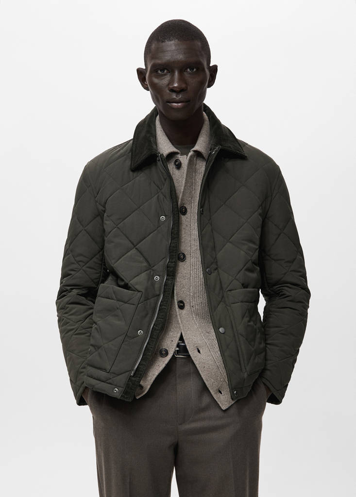 Черный цвет доступен только онлайн. Water Repellent: Техническая ткань, отталкивающая воду. Прямой крой. Узор в ромбы. Стеганая ткань. Воротник из вельвета. Два боковых накладных кармана. Внутренний карман. Длинные рукава. Спереди застежка на молнию и кнопку.