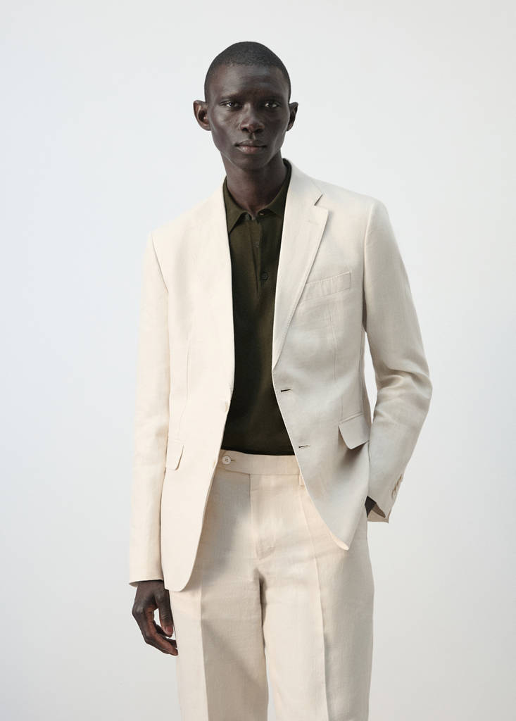 ESSENTIALS: Сделано, чтобы служить долго. Ткань: 100% лен. Slim fit. Лацканы с вырезом и петля. Длинные рукава с застежкой на пуговицы. Нагрудный карман с окантовкой. Два кармана с клапанами спереди. Внутренние карманы. Застежка на две пуговицы. Частичная подкладка.