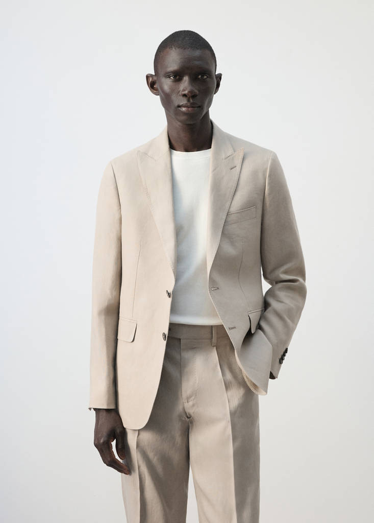 ESSENTIALS: Сделано, чтобы служить долго. Ткань: 100% лен. Slim fit. Воротник с заостренными лацканами с петлей. Длинные рукава с застежкой на пуговицы. Нагрудный карман с окантовкой. Два кармана с клапанами спереди. Внутренние карманы. Застежка на две пуговицы. Частичная подкладка.