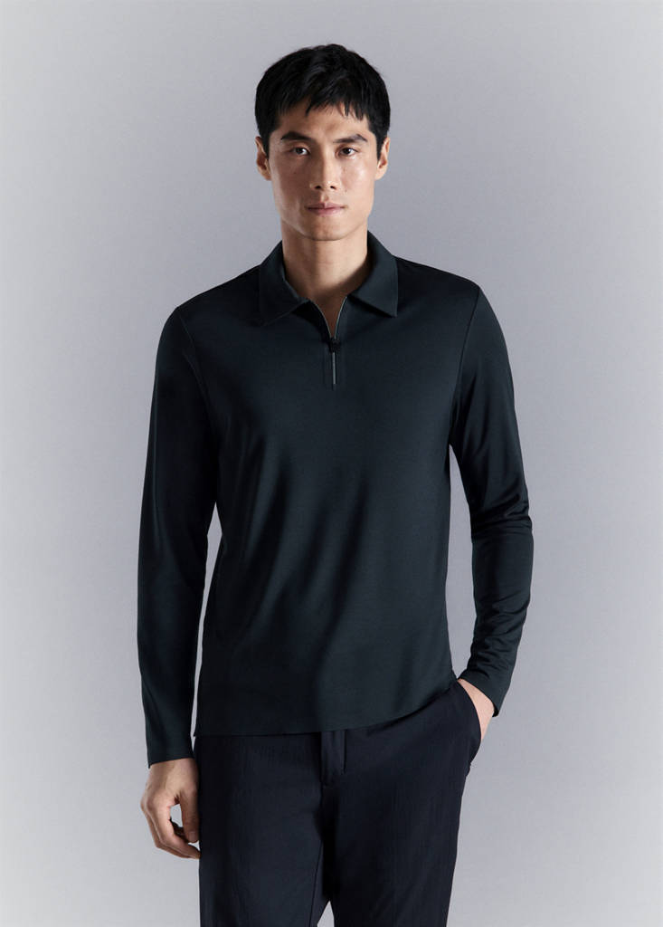 Коллекция Performance. Comfort Stretch: эластичная ткань, обеспечивающая дополнительный комфорт. Slim fit. Стандартная длина. Воротник поло с застежкой на молнию. Длинные рукава. Термопроклеенные манжеты и низ.