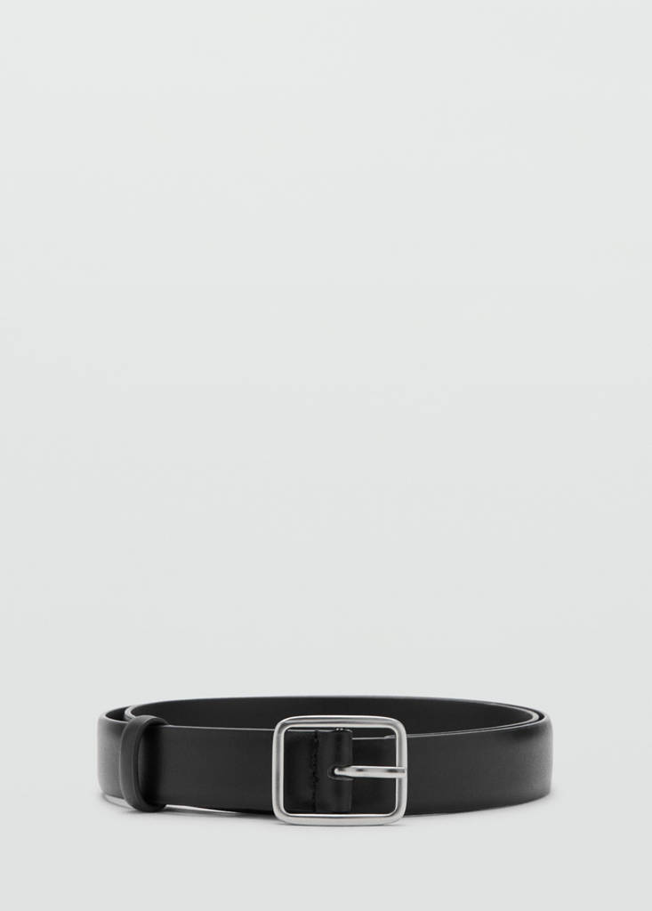 100% кожа быка. Металлическая пряжка. Бесплатная перфорация для регулировки размера в магазинах MANGO.