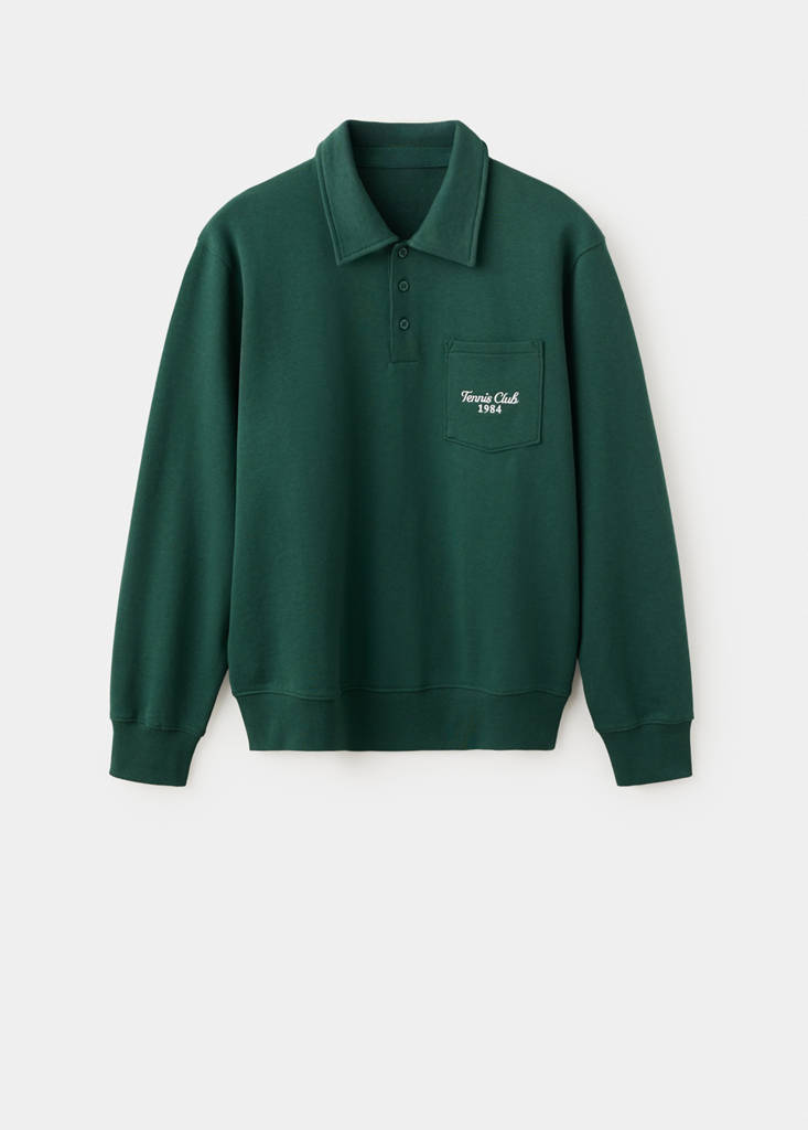 Ткань 100% хлопок. Прямой крой. Воротник поло с застежкой на пуговицы. Спереди накладной карман. Деталь с вышивкой. Длинные рукава. Манжеты и низ с отделкой в рубчик. Коллекция Чемпионат по теннису.