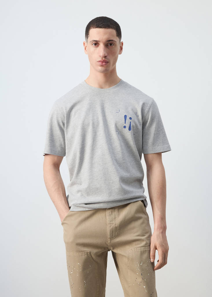 Прямой крой. Ткань 100% хлопок. Круглый вырез. Короткий рукав. Сбоку принтованный текст. Прямой низ.