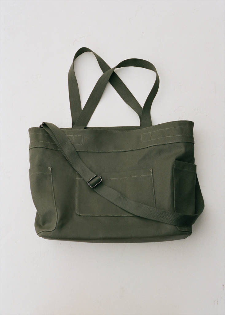 Modelo de carteira 'tote'. Tecido de lona de algodão. Duas asas curtas. Alça de ombro comprida, ajustável e removível. Bolsos exteriores. Bolso interior de fecho de correr. Pormenores pespontados