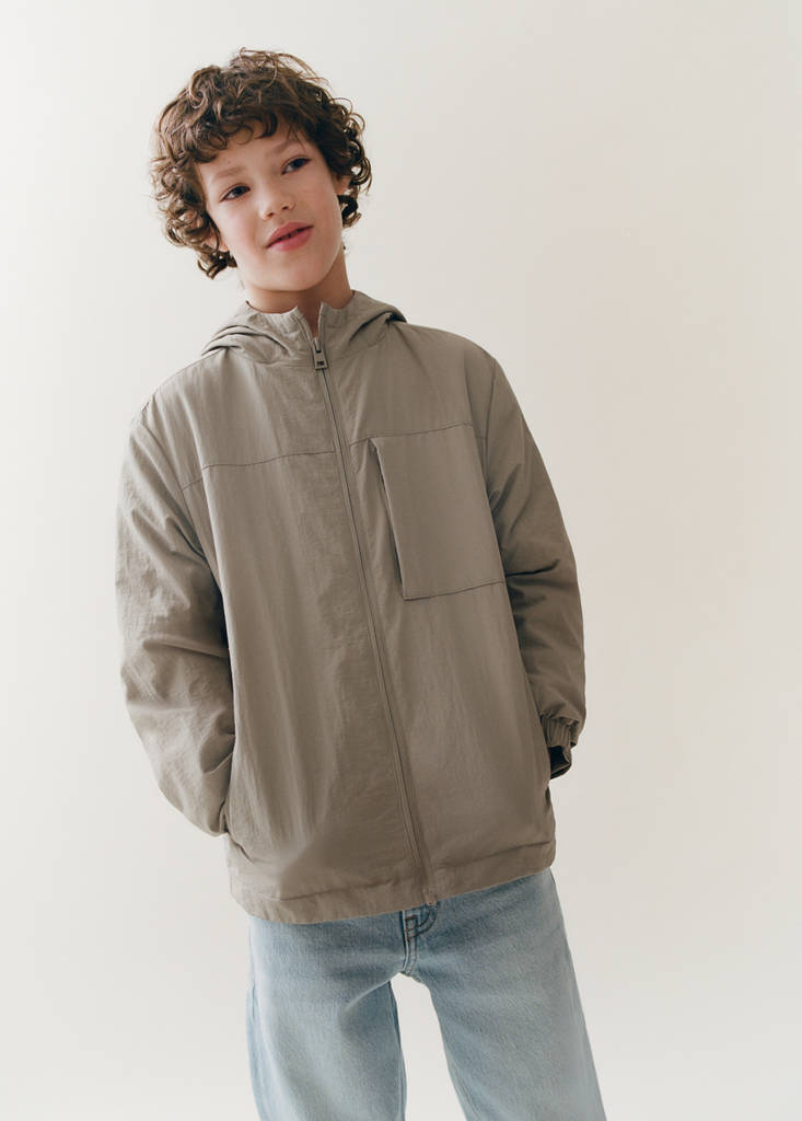 Design impermeável. Design reto. Capuz. Manga comprida. Forro interior. Bolso à frente com fecho de correr oculto. Fecho de correr